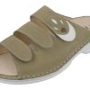 Mit dieser bequemen Damen Pantolette bekommt man Lust auf den Sommer, denn diese Hausschuhe sind super leicht und luftig. Das geringe Eigengewicht der Damenpantolette wird durch die weiße EVA-Laufsohle erzielt. Die drei verstellbaren Klettverschlüsse der Pantolette ermöglichen, dass der Schuh ganz individuell an Ihren Fuß angepasst werden kann und dadurch optimalen Halt bietet. Das lederbezogene Korkfußbett ist herausnehmbar und durch orthopädisch angefertigte oder neue Originaleinlagen auszutauschen. Die Einlagen sind unterhalb punktuell mit einem kleinen Klettverschluss befestigt, denn ein Sohlenrand ist hier fast nicht vorhanden.