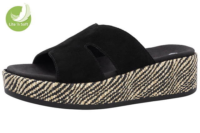 Komfort kann wirklich so stylisch sein! Diese schwarzen remonte Pantoletten für Damen aus Rauleder haben alles, was ein bequemer Schuh braucht. Der Gummizug ermöglicht einen bequemen Einstieg. Für ein angenehmes Tragegefühl sorgt die remonte Lite ´n Soft Technologie mit ihrer ultra weichen Sohle.